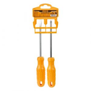 Набір викруток 2 шт INGCO містить в комплекті дві викрутки з прямим шліцом. Інструменти використовуються для закручування і відкручування кріпильних елементів з різьбленням.