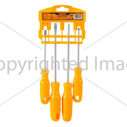Набір викруток 4 шт INGCO містить в комплекті дві викрутки з прямим шліцом і дві викрутки з хрестовим. Інструменти використовуються для закручування і відкручування кріпильних елементів з різьбленням.