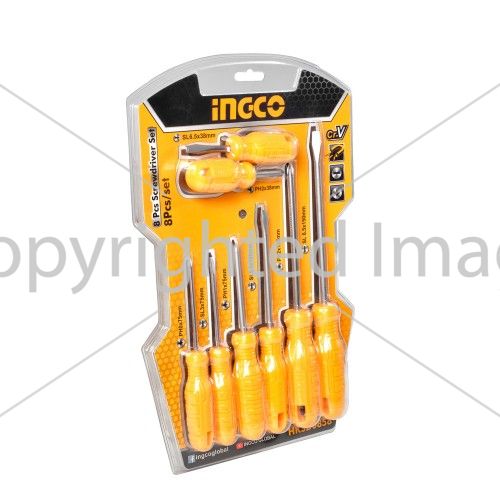 Набір викруток 8 шт INGCO містить в комплекті чотири викрутки з прямим шліцом і чотири викрутки з хрестовим. Інструменти використовуються для закручування і відкручування кріпильних елементів з різьбленням.