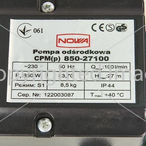 Опис відцентрового насоса NOWA CPM(p) 850-30110