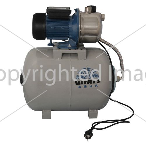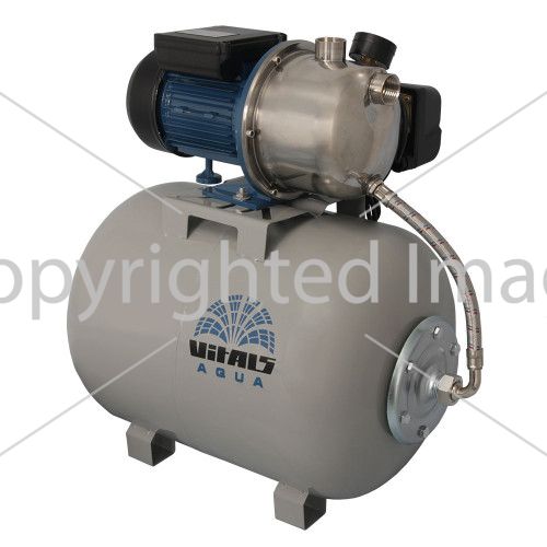 Станція Vitals Aqua AJS 1155-50e оснащена консольним роторним відцентровим самостійно всмоктувальним насосом серії JS із внутрішнім ежектором і корпусом оригінальної форми з нержавіючої сталі. Насоси цього типу забезпечують стабільність параметрів потоку води під час зміни умов роботи, найчастіше їх використовують в тих випадках, коли необхідно отримати великий об'єм води, яка перекачується, забезпечивши при цьому стабільні характеристики водного потоку і уникнувши необхідності заливки води під час кожного запуску. Щоб уникнути частих вмикань і вимикань насоса, а також щоб тиск в системі змінювався не стрибкоподібно, а плавно, в конструкції станції передбачений гідроакумулятор (сталевий розширювальний бак з еластичною мембраною) ємністю 50 літрів.
