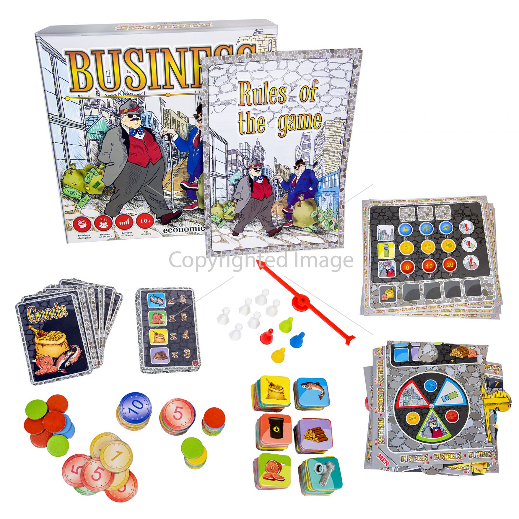 Настільна гра «BUSINESSmen» Strateg (30515) схожа на відому гру «Монополія», але відрізняється від неї. Тут учасники використовують товари для розвитку свого бізнесу, забезпечують купівлю, продаж, доставку та експортні операції. Інтерактивна розважально-навчальна гра познайомить з основами економіки капіталізму, навчить аналітиці, покращить стратегічне мислення та вміння передбачати наслідки своїх дій. Перед початком гри ознайомтеся з правилами, виберіть ігрові планшети, розділіть картки та валюту. Переможе найкмітливіший. ♦ Вік: 10+ ♦ Комплект: ігрове поле, 4 планшети, 32 картки товарів, 150 фішок товарів, 42 монети, 40 маркерів, 2 стрілки-покажчики, 10 фішок, кубик. ♦ Кількість учасників: 2-6 Мова: англійська.