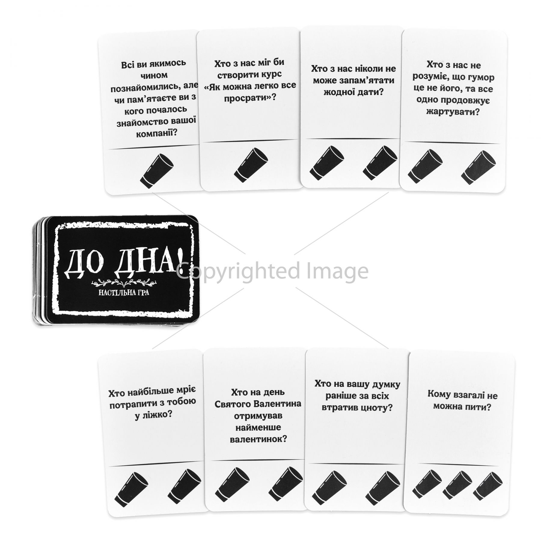 До Дна — 30971Опис: «До дна!» — це вибухово весела алкогольна гра з гострими, інколи дуже пікантними запитаннями, які миттєво розкривають вашу компанію з абсолютно нового боку.На кожній картці — ситуація або характеристика, і гравцям потрібно вирішити, кому вона пасує найбільше.Той, хто зібрав найбільше пальців, не тільки дізнається про себе щось новеньке (часто дуже несподіване ), а й, за правилами гри, випиває.Прості правила, жива атмосфера і море щирого сміху роблять «До дна!» ідеальним вибором для вечірок, і будь-яких веселих зборів.