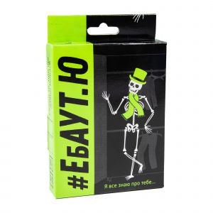 «Ебаут.Ю» – гра для компанії від 3 до 12 гравців, які полюбляють цікаві факти одне про одного. У грі 110 карток з різними твердженнями, які комусь можуть здатися смішними, а комусь дивними. Оптимальний вік гравців – від 15 років, адже деякі факти на картках дійсно гостренькі. Кожному гравцеві доведеться вирішувати, кому з супротивників підходить той чи інший факт та віддавати відповідні картки. Мета гри «Ебаут.Ю» Strateg (30520) – отримати якомога менше карток. Комплектація гри: картонна коробка розміром 13,5х9х2,2 см, 110 карток з картону, паперова інструкція. Вага гри в коробці: 150 г (+-20 г). Рекомендований вік гравців: від 16 років. Кількість гравців: 3-12. Гра українською мовою.