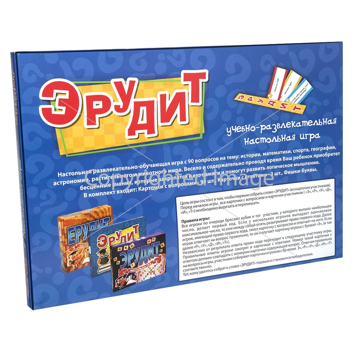 «Ерудит» – інтелектуальна гра, яка відразу захоплює маленьких всезнайок. Правила досить прості. Якщо гравець відповідає правильно на одне із запитань – «що? де? коли? », то йому видається фішка з буквою. Далі, дотримуючись правил, щоб здобути перемогу, учасник повинен зібрати слово «Ерудит». Більш детально з правилами гри можна ознайомитися, прочитавши інструкцію, яка входить в комплект. Всього в грі аж 90 запитань на різноманітні теми, тому настільну гру «Ерудит» Strateg (30450) можна назвати прекрасним способом дізнатися щось корисне для себе. ♦ Рекомендований вік: 6+ ♦ Размір пакування: 37х25,5х2 см ♦ Комплектація гри: картки з запитаннями 90 шт., картки гравців 4 шт., картки з відповідями, кубик, інструкція (на коробці). ♦ Матеріал: картон. ♦ Вага гри в коробці: 150 г (+-20 г) ♦ Кількість гравців: 2-4 Гра російською мовою.