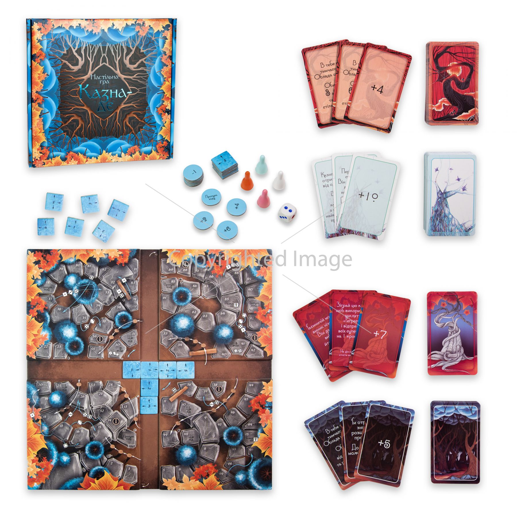 Одного вечора, в барі, ви почули розмову незнайомців про місце, де існує магія і можливість оволодіти чарами. З друзями, мріяли про це все життя. І хоч розмова незнайомців не вселяла довіри, втрачати вам вже нічого. Підійшовши до них, ви почали розмову і дізналися про чарівний ліс, під назвою “Казна-де”. Але є нюанс. Потрапити до нього лише через портал всередині цієї коробки. Пройти його можуть далеко не всі. Тому, зараз перед вами вирішальний час – ризикнути й опинитися в таємничому лісі та друзями також опанувати магічні знання, або продовжувати буденне життя? ♦ Вік: 8+ ♦ Комплектація гри: гральні картки , ігрове поле, тайли річки, жетони, фішки гравців , інструкція., кубик. ♦ Кількість гравців: 2-4 Гра українською мовою.