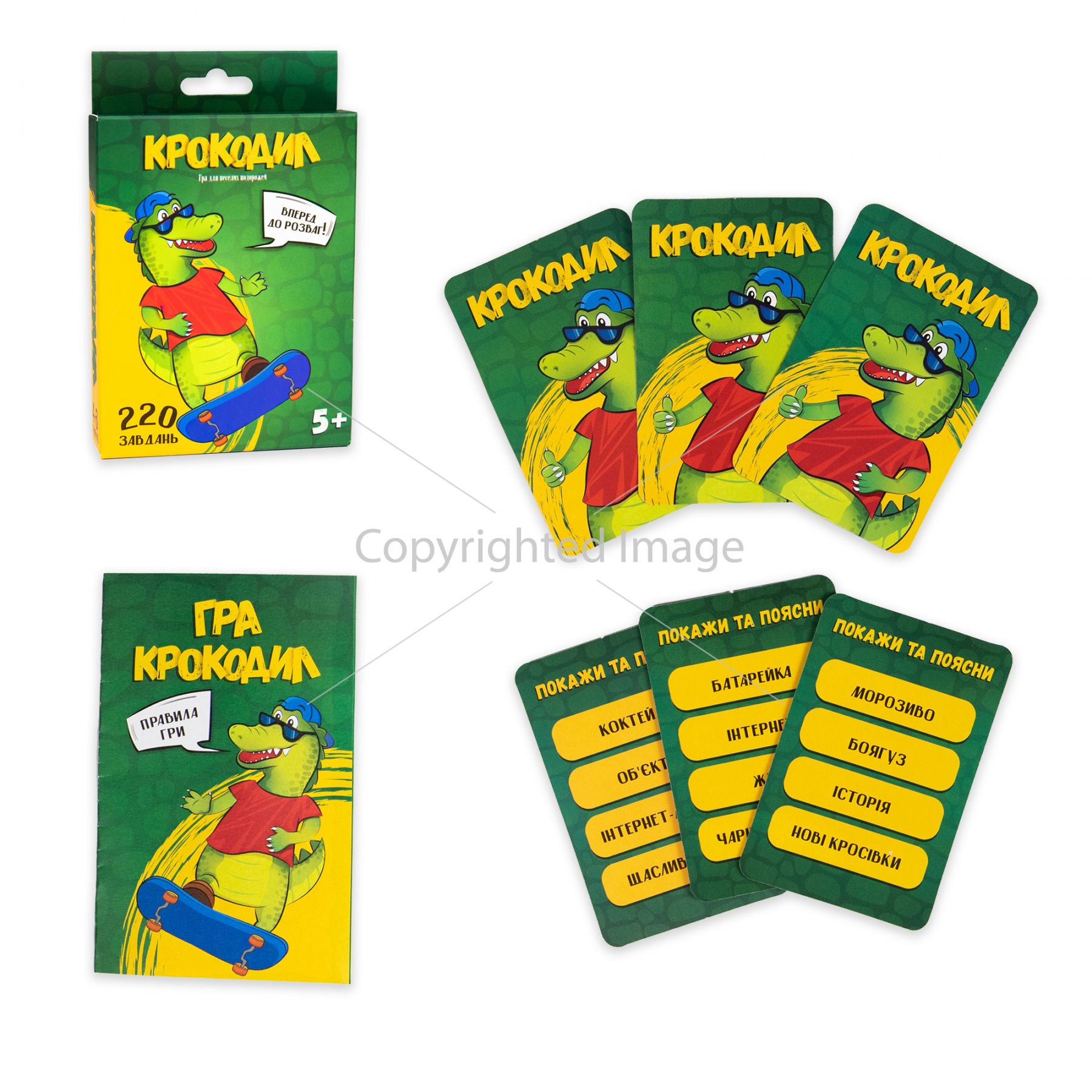 Грайте вдома, грайте в дорозі, грайте де, завгодно! Крокодил – це зрозуміла всім гра, в яку можуть грати одночасно і малі, і дорослі. Придумувати слова нема необхідності, адже вони вже є на картках. Вони зрозумілі і прості, але це не означає, що їх буде легко показати. Ваші акторські здібності точно прокачаються! «Крокодил» Strateg (30338) – це 220 слів українською.Грати не переграти! ♦ Рекомендований вік: 5+ ♦ Розмір коробки: 14,2х 9,2 х 2,2 см. ♦ Комплектація гри: 55 карток, інструкція. ♦ Матеріал: картон, папір. ♦ Вага гри в коробці: 80 г (+-20 г). ♦ Кількість гравців: 4-6 Гра українською мовою.