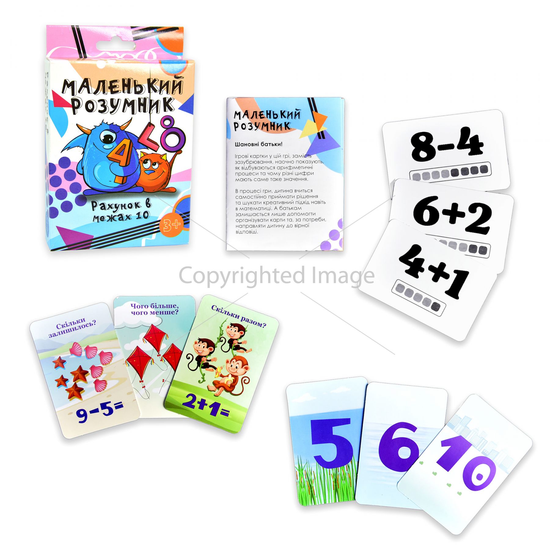 Настільна гра "Маленький розумник" (Strateg 30271) - це розвиваюча гра українською мовою, в ній 48 карток з задачами різного рівня складності, який підвищується поступово. Дитина навчиться порівнювати, додавати та віднімати, а також знаходити потрібну цифру або знак дії, щоб вираз був правильним. А завдяки ігровому формату, малюк з цікавістю пізнає світ початкової математики. ♦ Рекомендований вік: 3+ ♦ Розмір пакування: 14,3 х 9,2 х 2,2 см ♦ Комплектація гри: 48 картонних карток, паперова інструкція. ♦ Матеріал: картон. ♦ Вага гри в коробці: 150 г (+-20 г). ♦ Кількість гравців: від 2. Гра українською мовою.