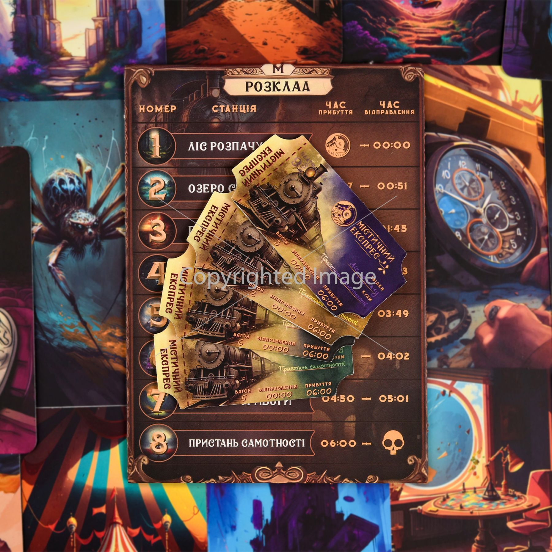 Настільна гра “Містичний експрес” - це загадкова подорож у темні магічні світи. Але пасажири ризикують зникнути на світанку, якщо не віднайдуть правильні двері та ключі від вагонів. А для цього треба відгадати загадки провідника, який так і хоче заплутати пасажирів та забрати їх у забуття. Лише ті, хто застосують усю силу своєї уяви, зможуть повернутися у реальний світ та розповісти усю правду про “Містичний експрес”. Гра чудово підходить для дружніх вечорів та як вишуканий подарунок!