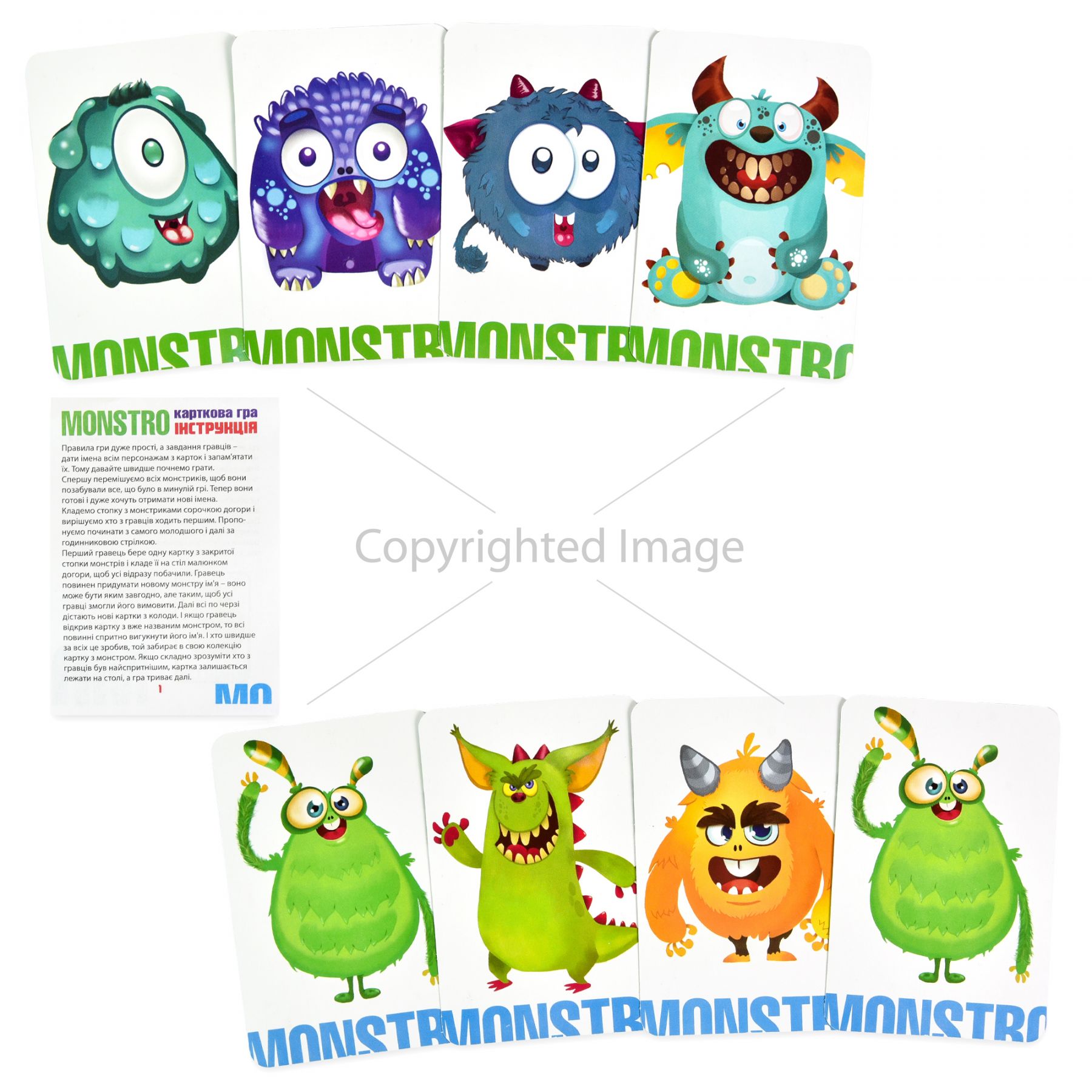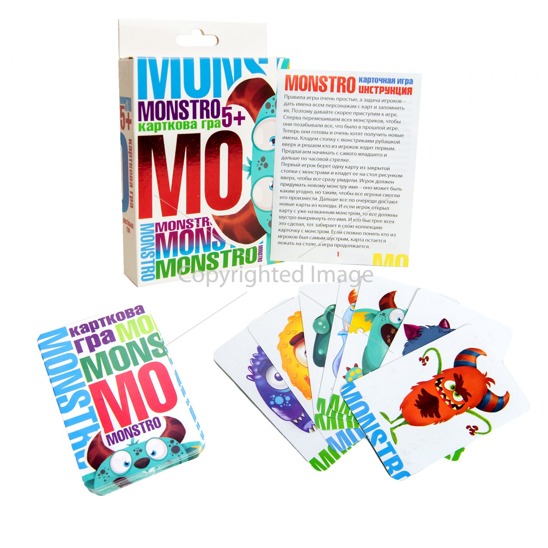 Карткова гра «MONSTRO» (Монстро) створена для дитячих розваг. Завдання гравців придумувати імена монстрам, які будуть з'являтися з ігрової колоди. Але одна справа імена придумати, і зовсім інша – запам'ятати їх. Коли у когось з монстрів з'явиться ім'я, зустрічаючи його знову потрібно це ім'я називати, а якщо з колоди відкриють безіменного монстра, тоді ім'я потрібно придумати. Фантазія гравців нічим не обмежується, називайте монстрів як забажаєте. Той, хто краще за всіх впорається з поставленим завданням стане переможцем. Компактна гра «MONSTRO» Strateg (32068) не вимагає багато ігрового простору і стане в пригоді в дорозі, на прогулянці або на відпочинку. ♦ Рекомендований вік гравців: від 5 років. ♦ Размір пакування: 13,5х9,3х2,3 см; ♦ Комплектація гри: картонна коробка розміром 13,5х9,3х2,3 см, 55 карток з картону, паперова інструкція. ♦ Вага гри в коробці: 100 г (+-20 г) ♦ Кількість гравців: від 2. Гра українською мовою.