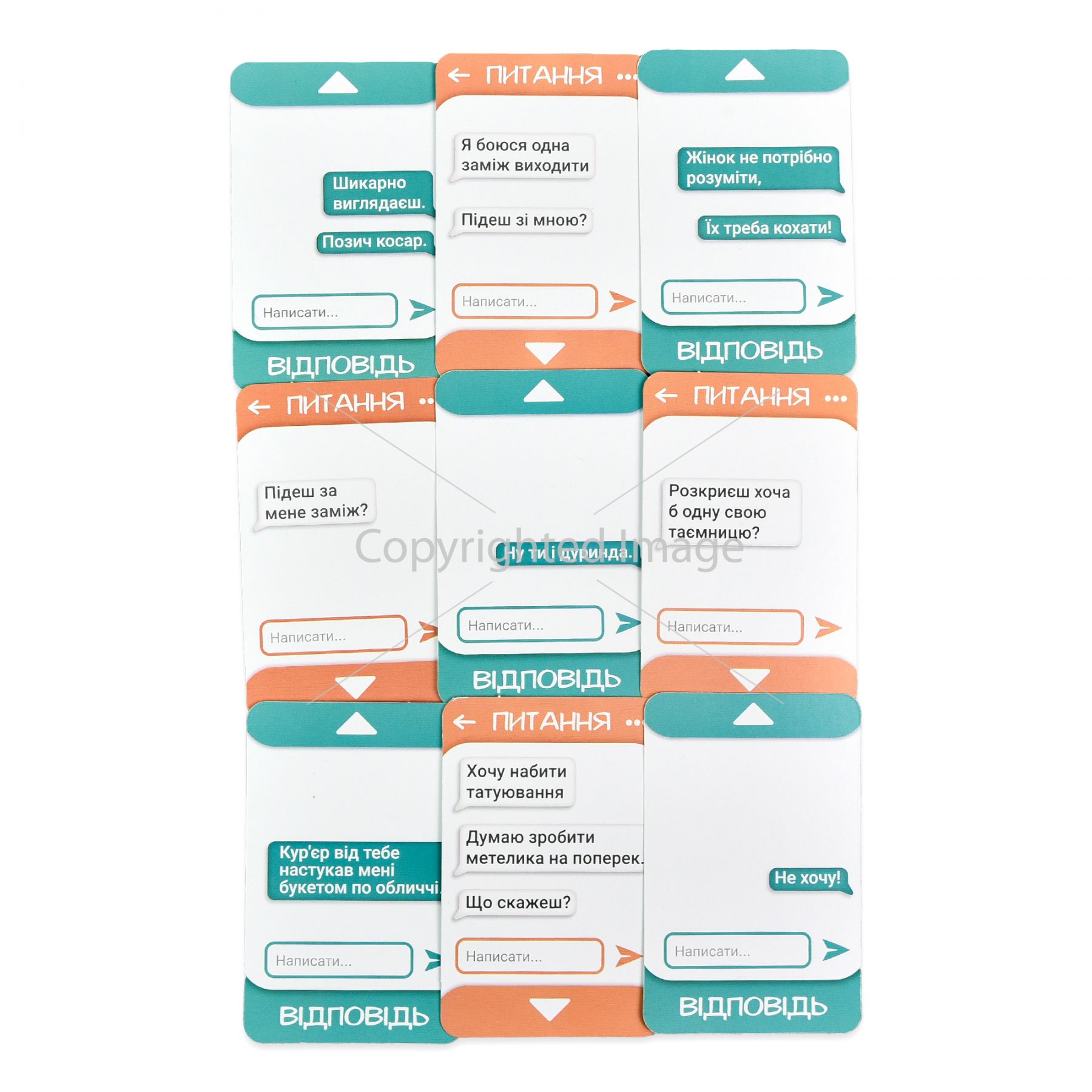 «Початимося?» Strateg (30334) у міні-версії. Цю комедійно-романтичну гру для закоханих, друзів або закоханих друзів можна брати з собою будь-куди, щоб жодної хвилини не нудьгувати. В «Початимося?» є 55 двосторонніх карток, на яких написані фрази привітання, жарти, компліменти і т.д., які можна іноді зустріти в переписці будь-кого. Завдання гравців побудувати якомога смішніший діалог, викладаючи по черзі картки з рук або витягуючи їх навмання з ігрової колоди. Таким чином, можна з’ясувати які жарти вашій коханій людині не до вподоби, а з яких вона не проти пореготати разом з вами. ♦ Вік: 16+ ♦ Комплектація гри: 55 карток, інструкція. ♦ Кількість гравців: від 2 до 4. Гра українською мовою.
