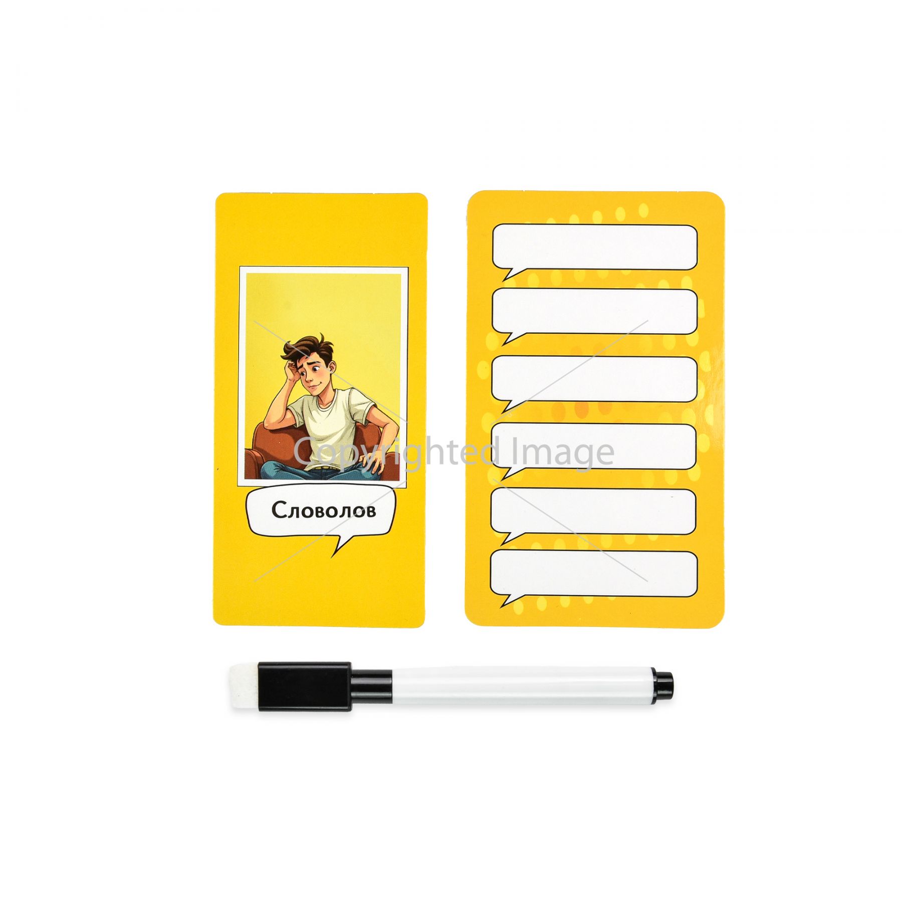 ♦ Комплектація: коробка, картки ролей - 8 шт., картки для написання - 6 шт., маркери - 6 шт., ігрове поле, фішки - 16 шт., фішка першого гравця, підставка, інструкція.