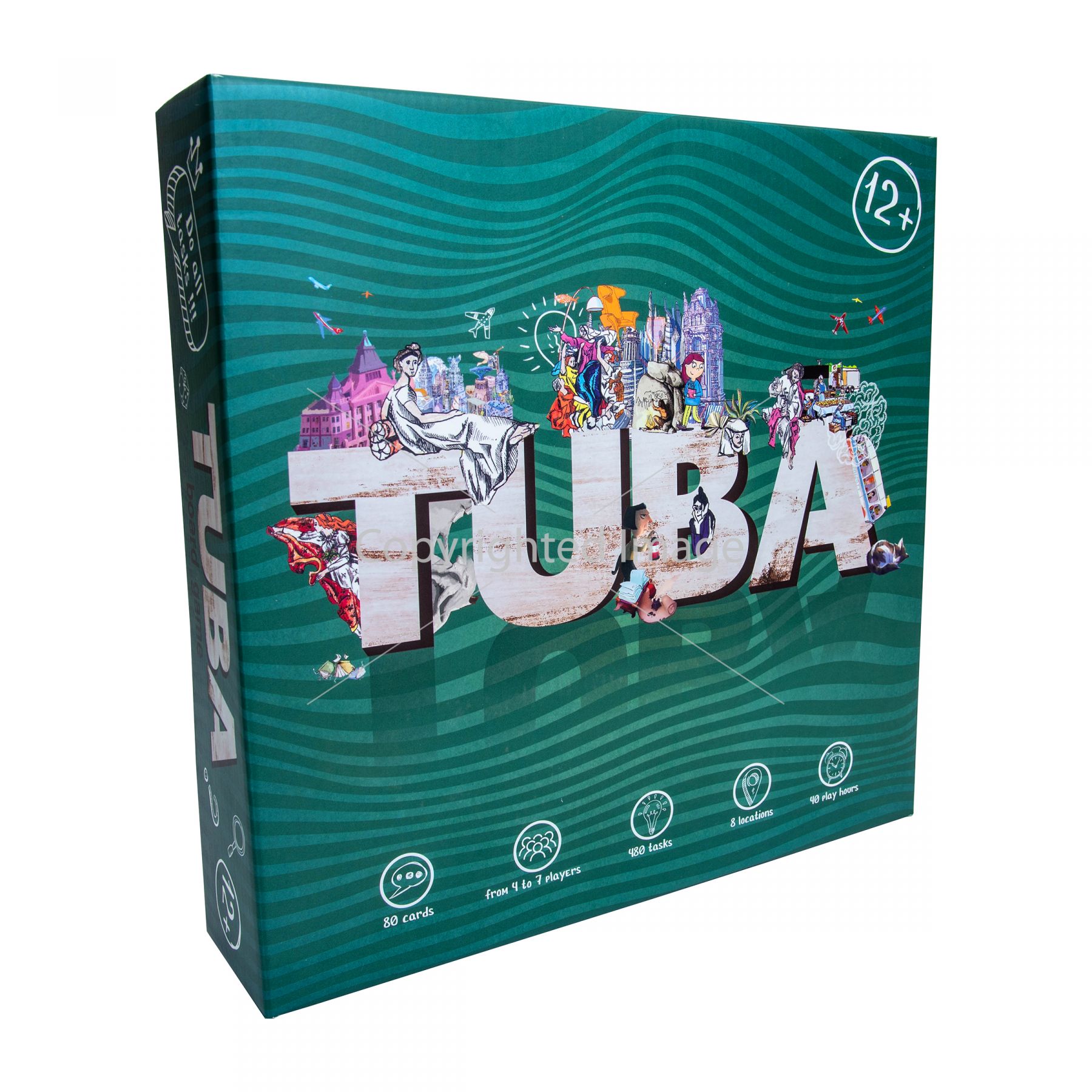 Гра «Туба» Strateg (30264) захопить всю компанію з перших нот. Граючи в неї, можна розважитись усією компанією, при цьому розвинути уважність та командний дух. Головний предмет гри – дерев'яна туба, яка встановлюється на столі. Усі гравці отримують ігрові поля з будь-яким сюжетом. Один із гравців стає здаючим, вибирає картки із завданнями та відповідно до очок, що випали на кубику, одним із способів – словами, малюнками чи жестами – описує предмет на ігровому полі. Гравець, який першим схопив тубу, відповідає на запитання. Якщо відповідь неправильна, він повинен повернути тубу на місце і передати хід іншому гравцю. На кожному ігровому полі близько 60 завдань. Кожен гравець, який правильно відповів, пересуває свою фішку на біговій доріжці. А перемагає той, хто першим прийде до фінішу. ♦ Вік: 12+ ♦ Комплект: 80 карток, 7 фішок, 12 ігрових полів, бігова доріжка, дерев'яна туба, кубик, інструкція. ♦ Кількість учасників: 4-7 Мова англійська.