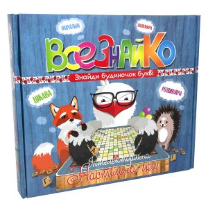 Настільна гра «Всезнайка» (802) українською мовою від ТМ Strateg - це чудове рішення для компанії друзів або затишний вечір із родиною! Ця інтелектуальна гра в словах розвиває кругозір, уяву та об'єднує. Набір включає ігрове поле з високоякісного щільного картону у вигляді пазлу з 4 частин, дерев’яних фішок з літерами в сумці та інструкція з детальними правилами гри. Суть гри полягає в тому, щоб скласти слова з центру ігрового поля горизонтально або вертикально. Слова повинні перетинатися за принципом кросвордів, тобто мати мінімум одну або кілька спільних букв. За складені слова гравцям присуджуються бали. Крім того, кожна фішка з буквою має певне значення. Це також потрібно враховувати, щоб набрати максимальну кількість балів. ♦ Вік: 6+ ♦ Розмір упаковки: 33x28.5x5.5 см ♦ Набір: ігрове поле, чіпси, інструкції; ♦ Матеріал: картон, дерево; ♦ Кількість гравців: 2-4; ♦ Орієнтовний час гри: 30-60 хвилин. Мова: українська
