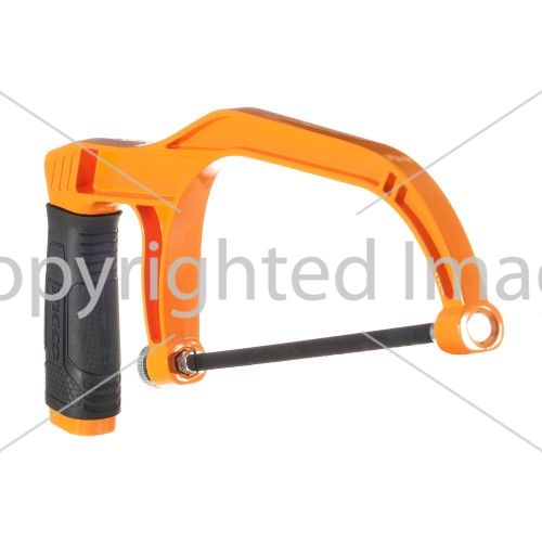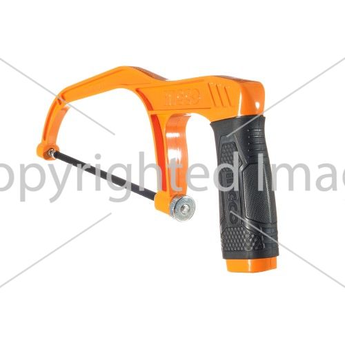 Двокомпонентна ручка ножівки має ергономічну конструкцію, що забезпечує надійне захоплення інструмента та знижує навантаження на кисть для комфортної та тривалої роботи.