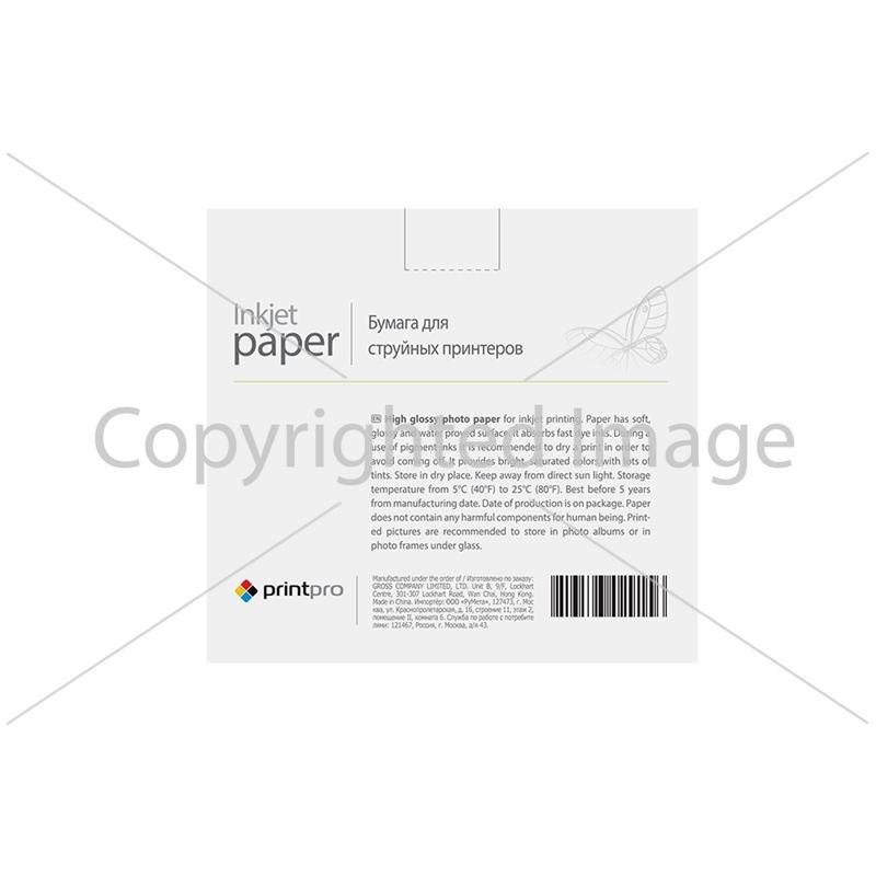 Глянцевий фотопапір PrintPro для повсякденного струменевого і лазерного друку. Має гладку, глянцеву поверхню. Завдяки паперовій основі і помірним ступенем глянцю, папір підходить для друку фотографій і графіки, як на струменевих, так і лазерних принтерах. Має гарні властивості по вбиранню чорнил та закріпленню тонера. При друку пігментним чорнилом рекомендовано просушувати відбиток щоб запобігти змазуванню з поверхні. Зберігати в сухому місці в стороні від сонячного світла. Температура зберігання від 5°С до 25°С. Не містить шкідливих для здоров"я речовин. Надруковані знімки рекомендовано зберігати в альбомах або в рамках під склом. Ця модель паперу призначена тільки для друку на струменевому принтері та персонального використання.