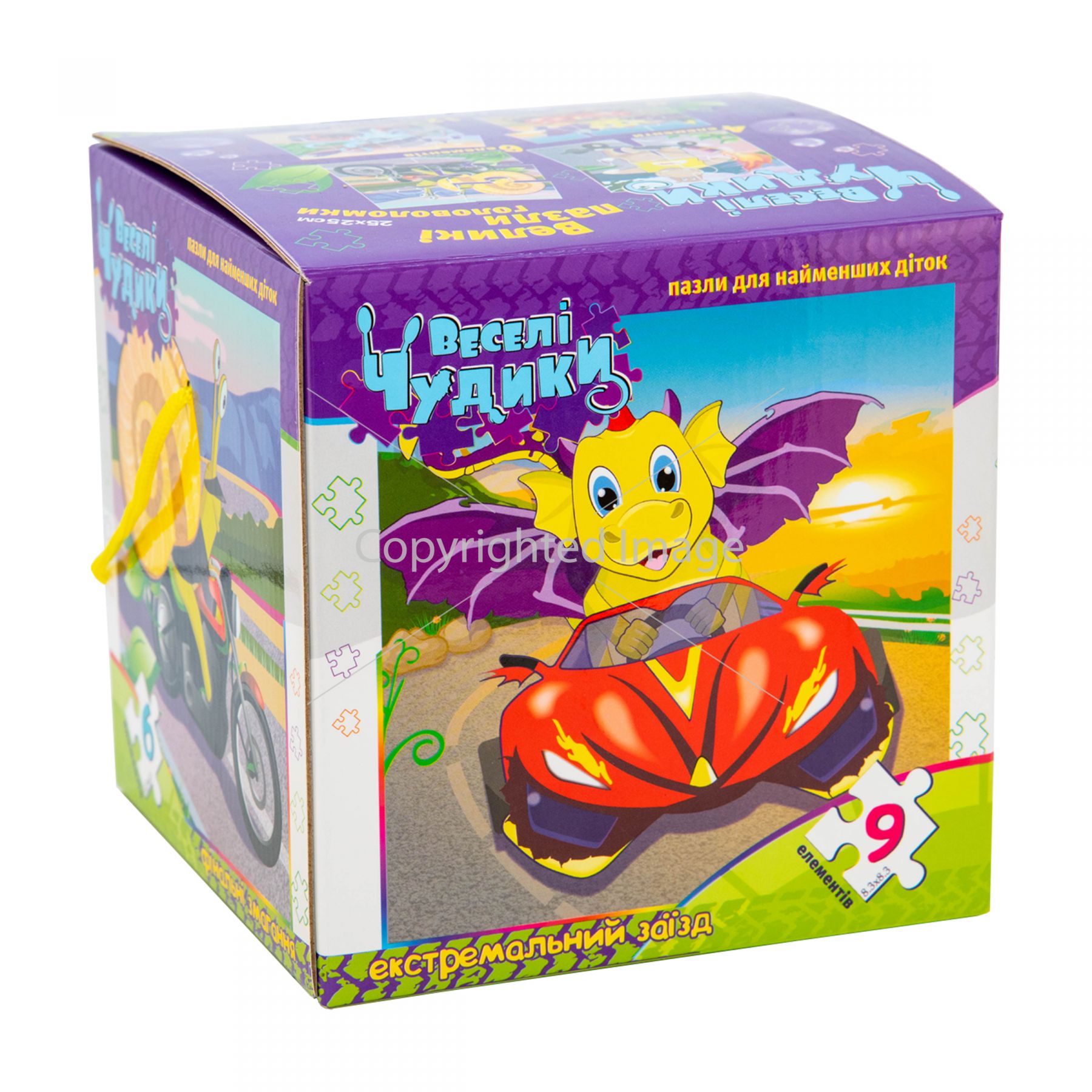 Зображення з пригодами кумедних героїв малюк зможе зібрати за допомогою пазла «Веселі чудики» (Strateg 20170). У наборі чотири пазли різного ступеня складності – від 2х2 до 4х3, розміри елементів – від 12.5 до 6.2 см. На яскравих кольорових картинках показані герої на незвичайних транспортних засобах. У зібраному вигляді буде чудовою прикрасою дитячої. Високоякісна зносостійка поліграфія збереже зображення навіть після багаторазового складання. Складання пазла сприяє розвитку координації, моторики, уяви, пам'яті та просторової орієнтації. Кількість елементів – від 4 до 12, розмір картинок – 25х25 см, упаковані елементи у гарну коробку з ручкою. ♦ Вік: 2+ ♦ Матеріал: тришаровий картон; ♦ Комплект: 4 пазли; ♦ Розмір у зібраному вигляді: 25 х 25 см; ♦ Розмір упаковки: 17 х 17 x 17 см; ♦ Мова українська.