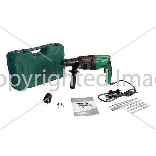 До комплекту постачання перфоратора входять допоміжне руків’я, міцний пластиковий кейс для зручності транспортування і зберігання інструменту, набір аксесуарів.