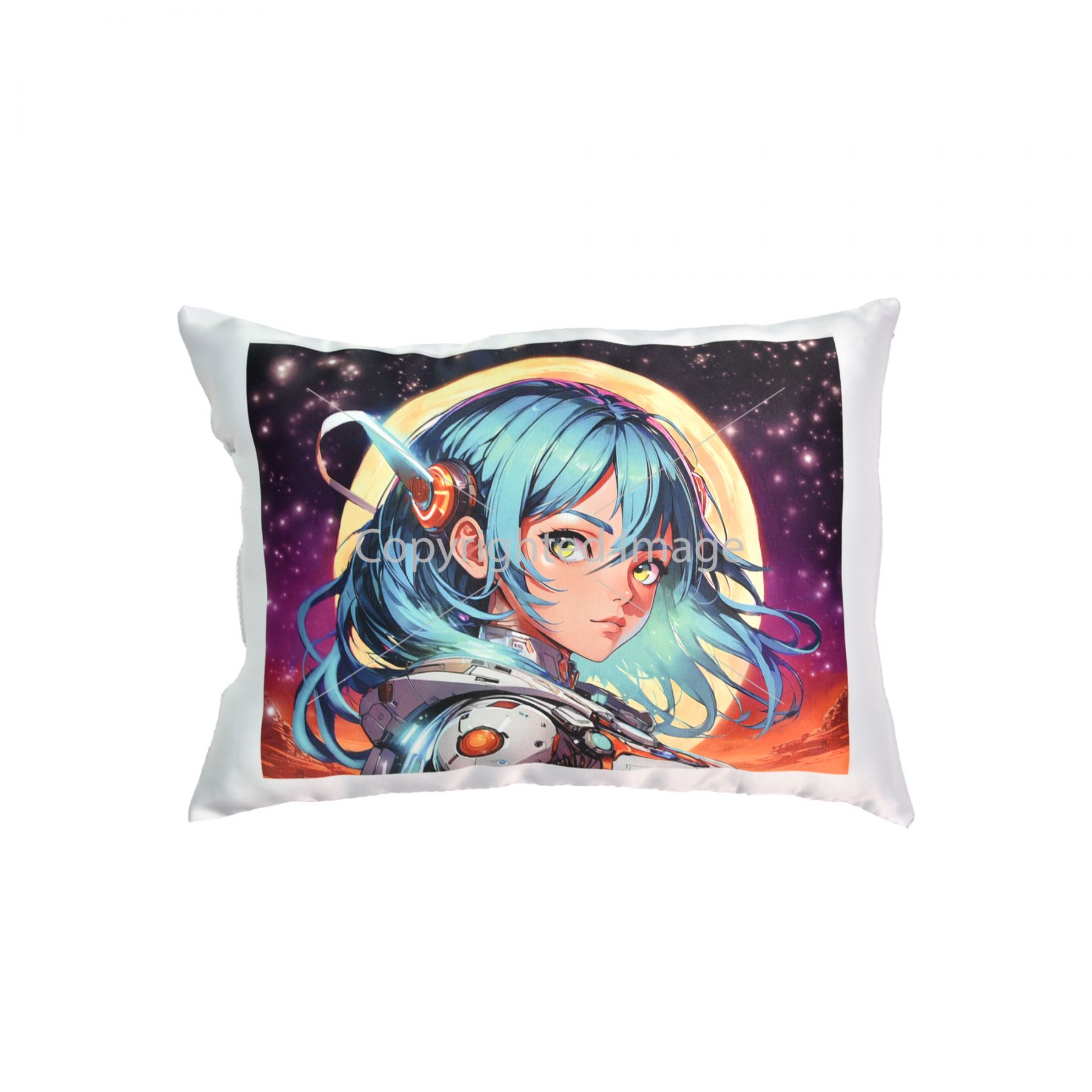 Подушка "Аніме дівчина у мистецькому світі" розмір 26*35 см (чорна) з нанесенням сублімації (60673)
