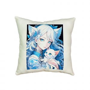 Подушка мікровелюр "Аніме, дівчина з кошеням" розмір 35*35 см молочна (60725)