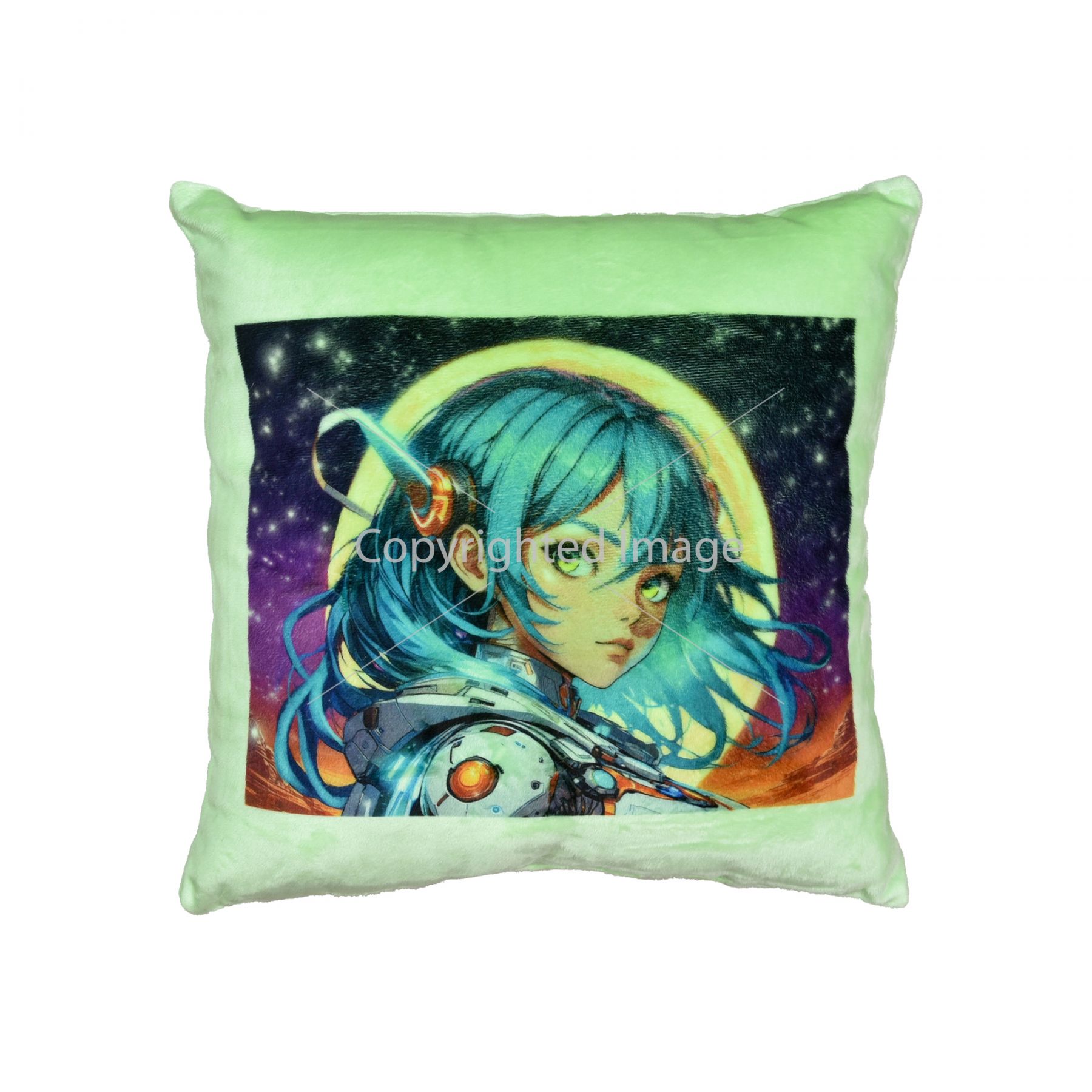 Подушка плюшева "Аніме, дівчина у мистецькому світі" розмір 35*35 см зелена (60732)