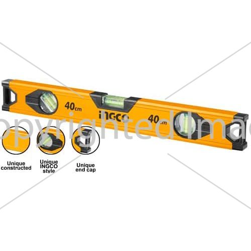 Будівельний алюмінієвий рівень 400 мм INGCO — інструмент для виявлення відхилення поверхні по горизонталі та вертикалі.
