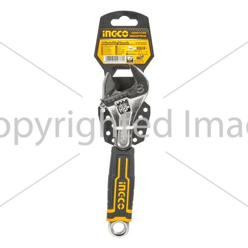 Ключ розвідний 200 мм (0-30 мм) CrV INGCO INDUSTRIAL має міцну конструкцію, широку ручку і зручну шестигранну форму зіву.