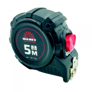 Вимірювальна рулетка гумова з нейлоновим покриттям полотна 5 м × 19 мм автостоп Vitals Professional призначена для вимірювання довжини під час проведення будівельних або ремонтних робіт.