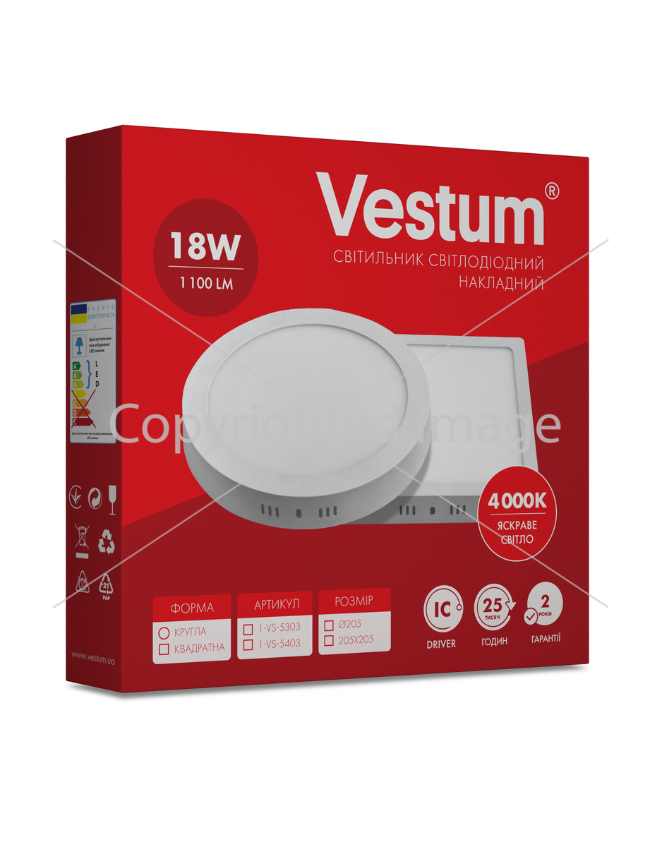 Квадратный светодиодный накладной светильник Vestum 1-VS-5403 мощностью 18 Вт даёт 1100 Лм света. Потребляя в разы меньше электричества, чем лампы накаливания или люминесцентные лампы, светильник даёт такое же количество света и прослужит в несколько раз дольше. Панель устанавливается на скобу, которая идёт в комплекте. Благодаря конструкции, панель имеет низкий уровень бликов согласно стандарта UGR19.