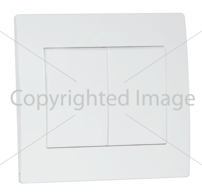 Вимикач подвійний у двох кольорах. Основа з оцинкованої сталі. Мідні контакти зі срібним покриттям. Можливість управління двома джерелами світла. Матеріал корпусу – негорючий PC-пластик.