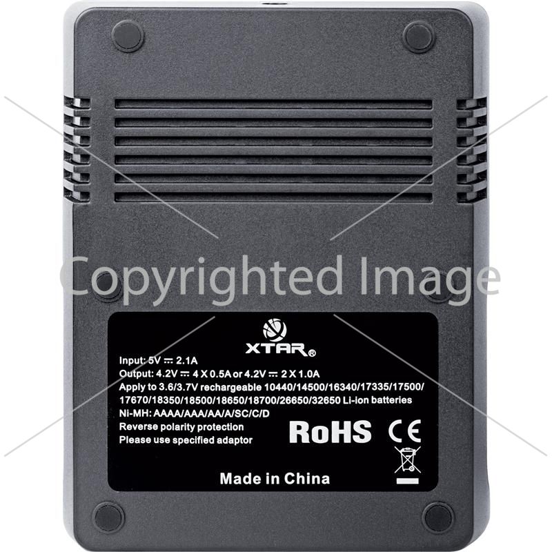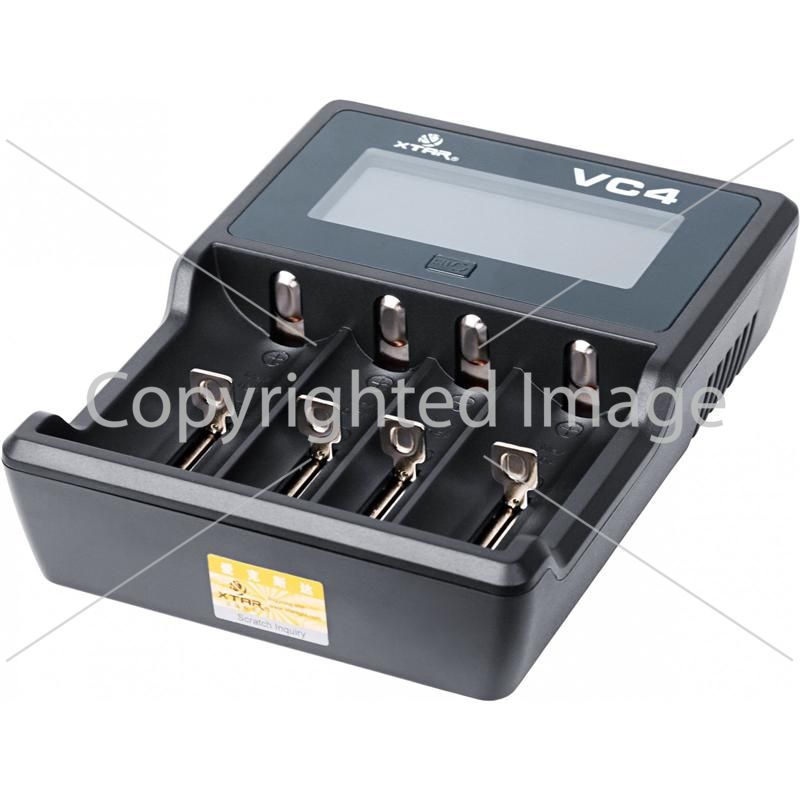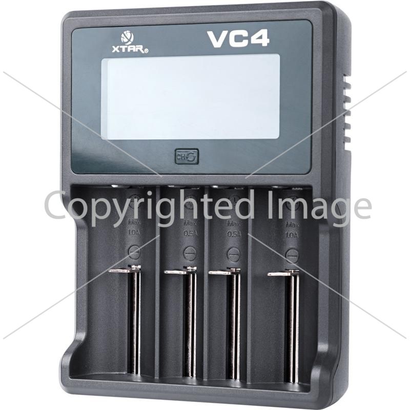 XTAR VC4 - універсальний 4х-канальний зарядний пристрій з великим графічним дисплеєм, функцією вимірювання ємності та підключенням через USB. Підходить для зарядки всіх поширених типорозмірів NiMH і Li-ion акумуляторів, в тому числі АА, ААА, 18650, 20700, 21700, 14500, 16340, та ін. У крайніх слотах можна заряджати акумулятори великого діаметра: C R14, D R20, 26650, 32650. Сумісно з акумуляторами 18650 і 26650 з платою захисту.