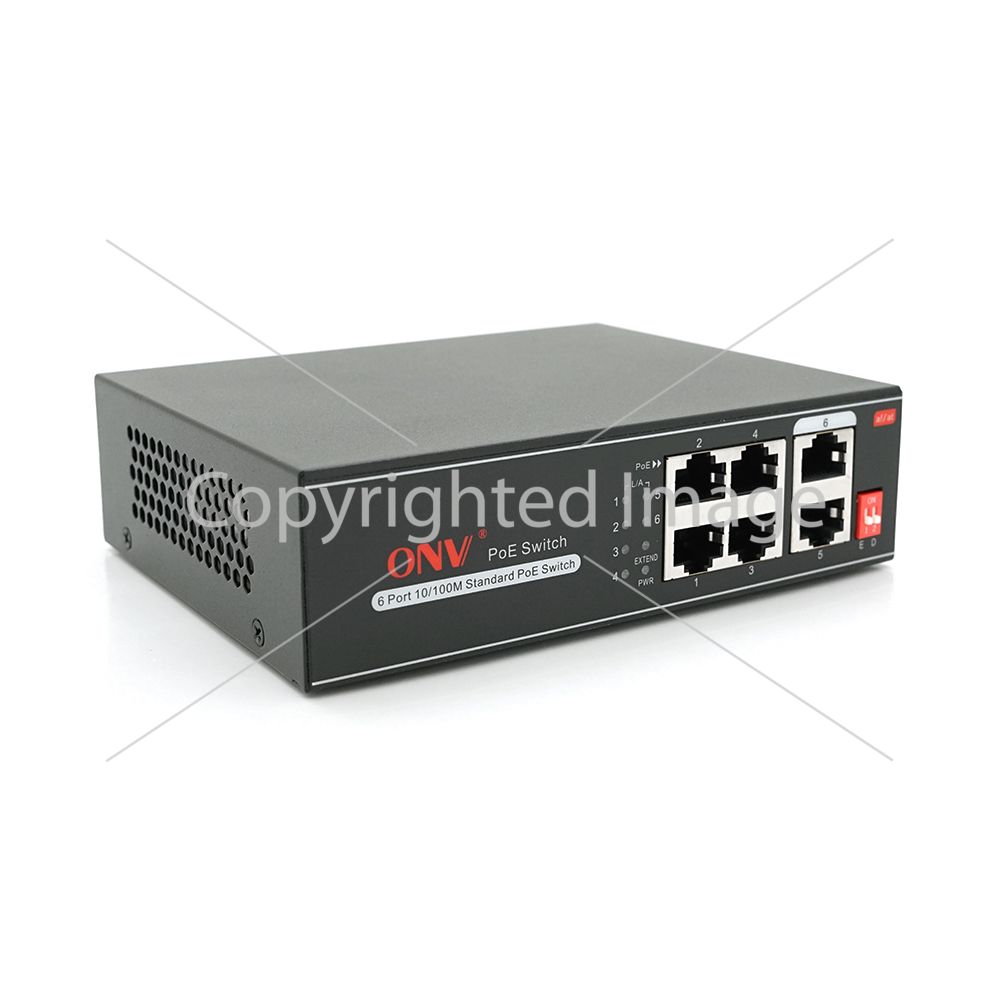 4х портовий PoE комутатор з автоперезапуском ONV-H1064PLD, 4хРоЕ 100 Мбіт + 2х100 Мбіт до 250м, IEEE802.3af/at, загальна потужність 65Вт