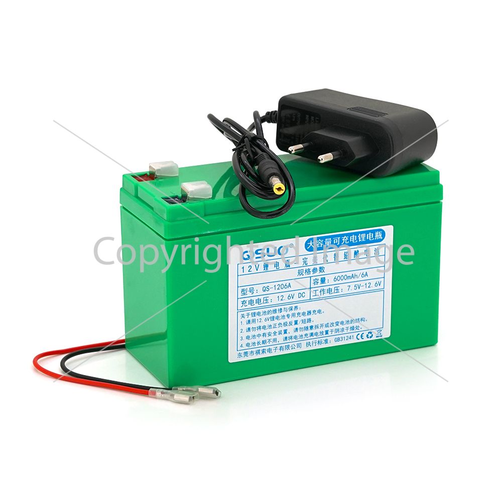 Аккумуляторна батарея літіева QSuo 12 V 6A с елементами Li-ion 18650 (150X65X94) вага 605 грамм+ зарядний пристрій 12,6V 1A
