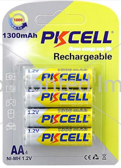 Акумулятор PKCELL 1.2V AA 1300mAh NiMH Rechargeable Battery, 4 штуки в блістері ціна за блістер, Q12