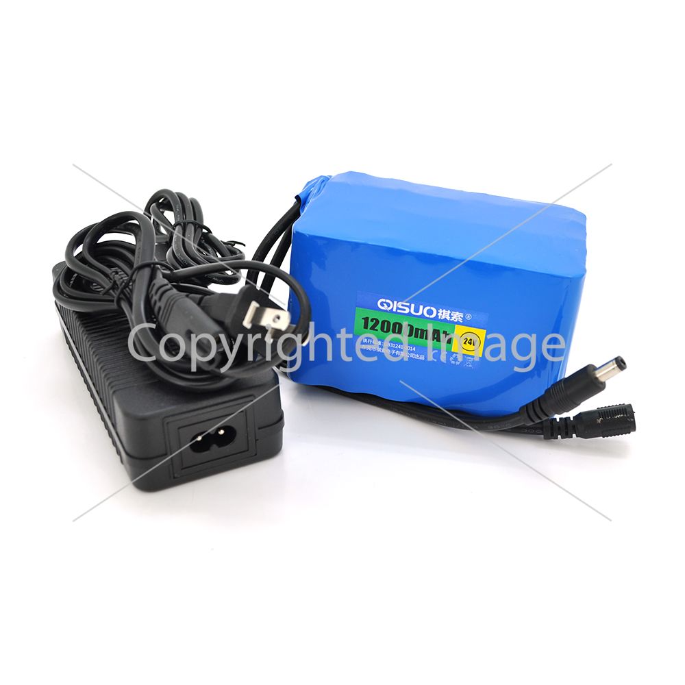 Акумуляторна батарея літієва QiSuo 24V 12A з елементами Li-ion 18650 + зарядний пристрій 25.2V3A DC5.5x2.1, (110x76x67mm)