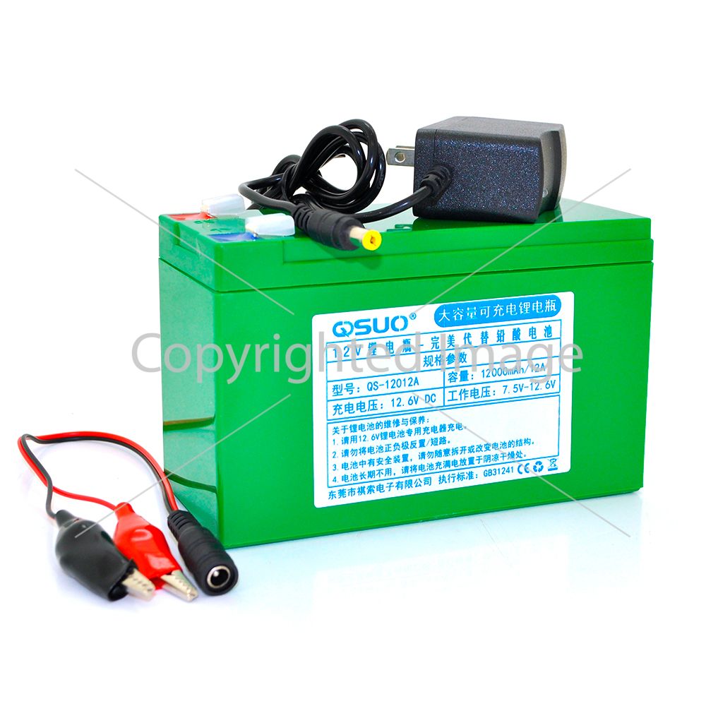 Акумуляторна батарея літієва QSuo 12V 12A з елементами Li-ion 18650 (150X64,5X97,7) + зарядний пристрій 12,6V / 1A + крокодили