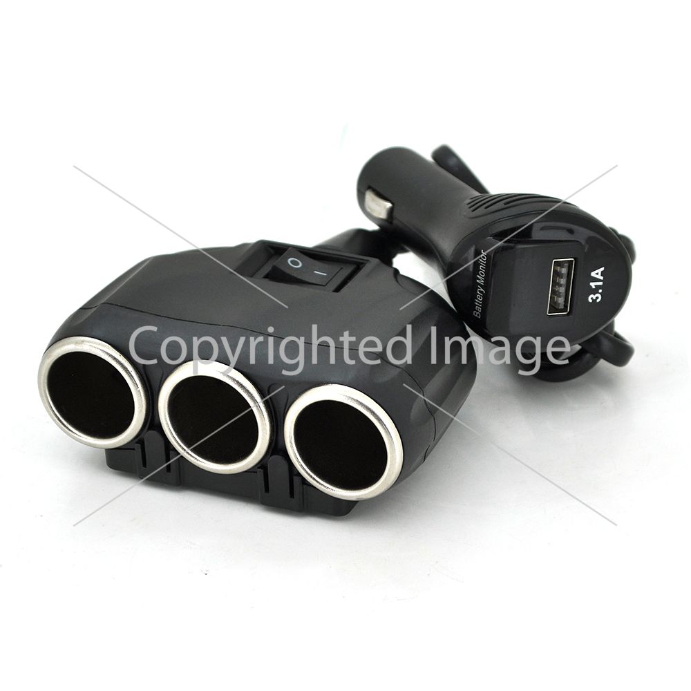 АЗП розгалужувач + вольтметр Olesson 1634, 12V-3 * 12V + USB, Black, Blister