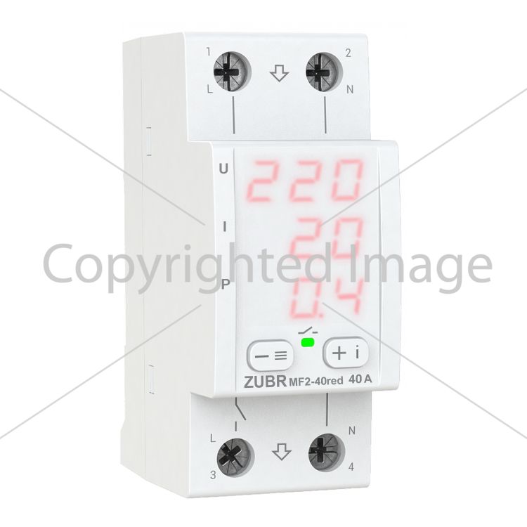 Багатофункціональне реле однофазне MF2-40 на DIN-рейку, 40А, 8800ВА, 120-280В, двомодульне з індикатором напруги, струму, потужності (Червоний)