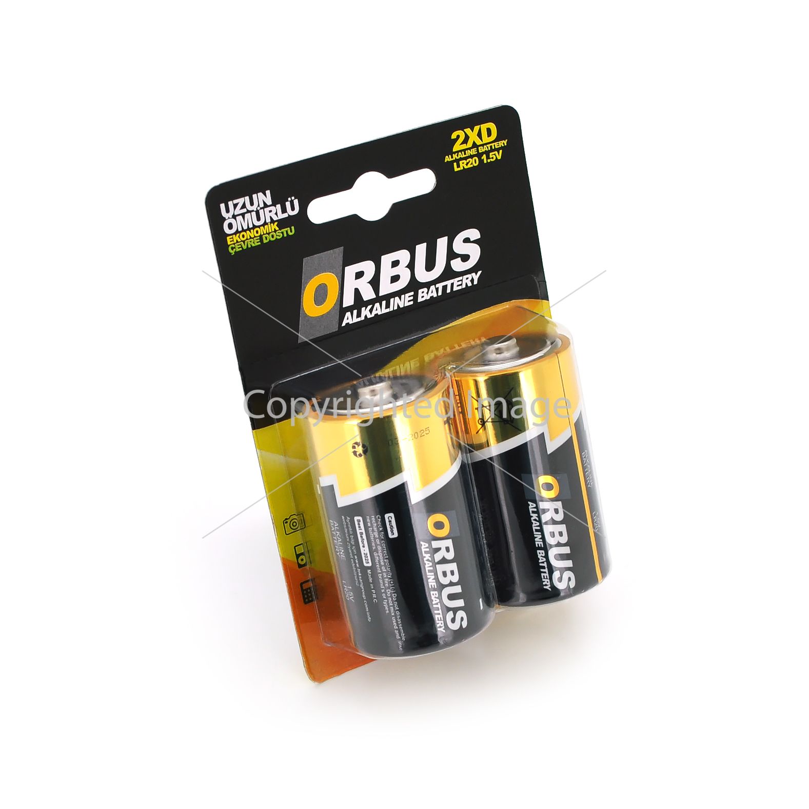 Батарейка лужна Orbus D-R20, 2 штуки у блістері, ціна за блістер