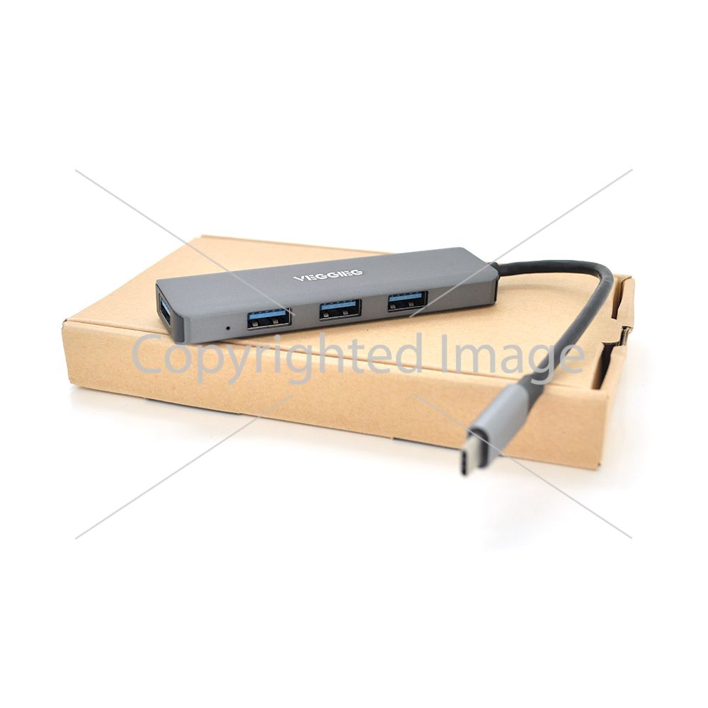 Хаб-конвертор VEGGIEG Type-C (тато) на USB3.0 * 4 (мама), 10 см, Silver, Box