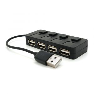 Хаб USB 2.0 4 порту, Black, 480Mbts живлення від USB, з кнопкою LED / Blue на кожен порт, Blister Q100
