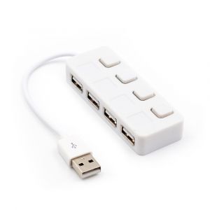 Хаб USB 2.0 4 порту, White, 480Mbts живлення від USB, з кнопкою LED / Blue на кожен порт, Blister Q100