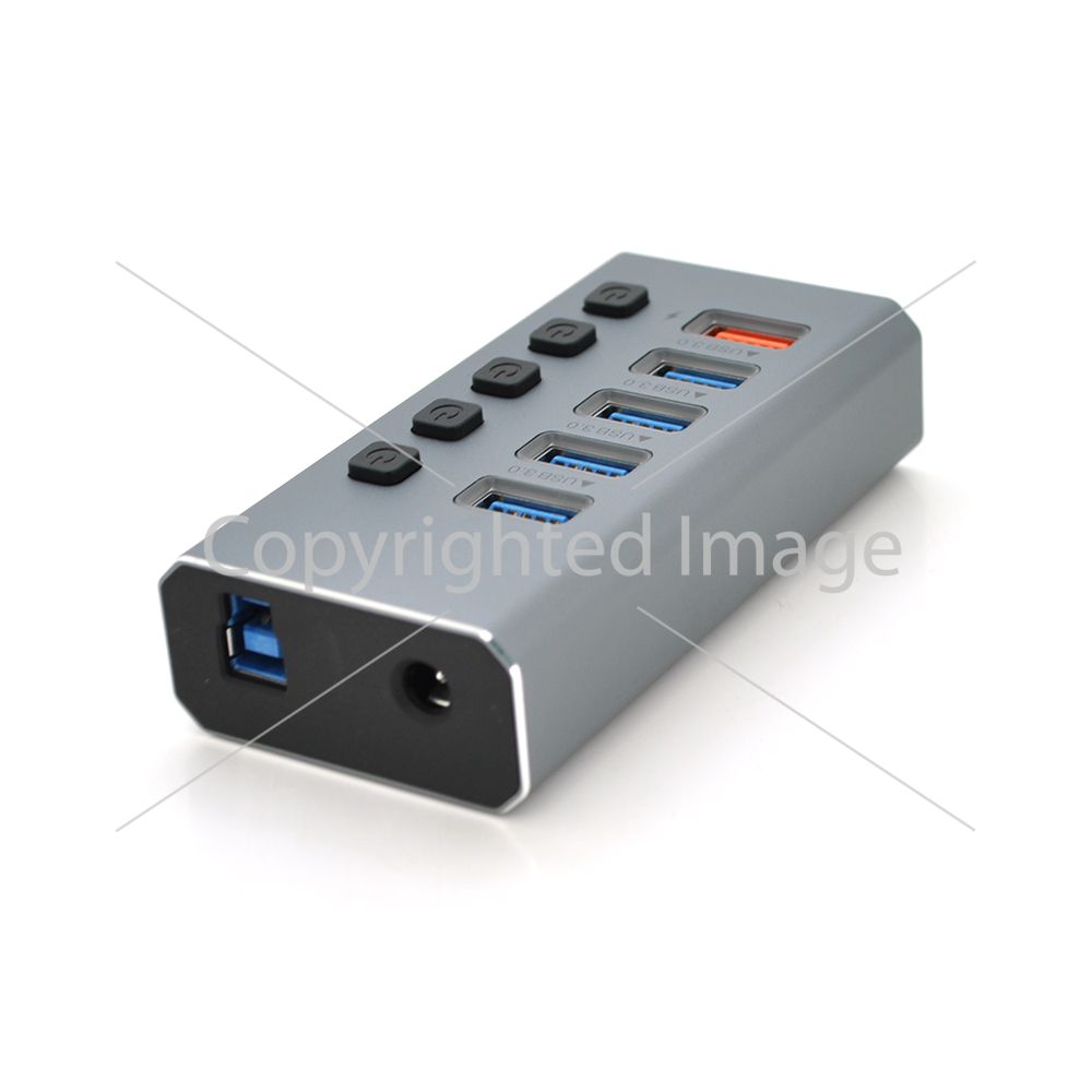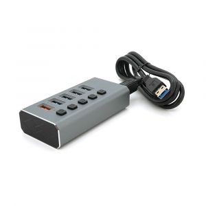 Хаб USB 3.0, 4 порти USB 3.0 + 1 порт QC3.0, з перемикачами на кожен порт, DC5V3A, Black, BOX