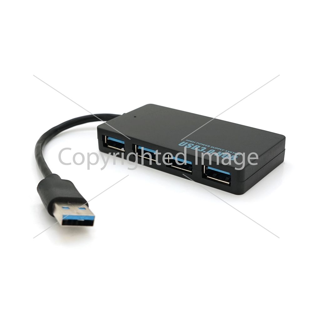 Хаб USB 3.0, 4 порту, плоский, чорний, підтримка до 2TB, кабель 0,14м, Блистер