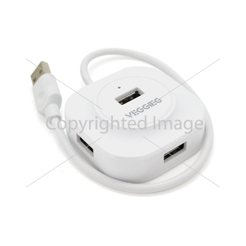 Хаб VEGGIEG V-U2407 USB 2.0 4 порта, 480Mbts, живлення від USB, White, 0,3m, Box