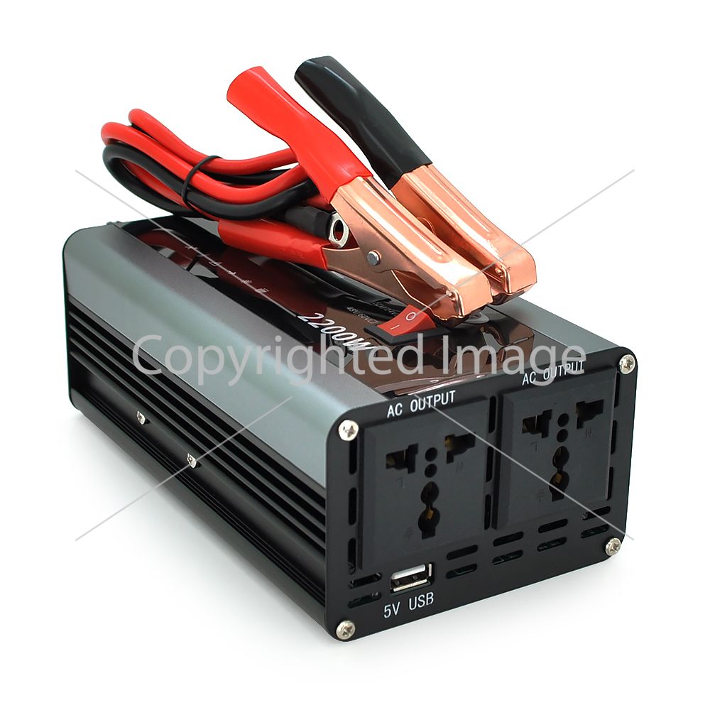 Інвертор напруги AEV2200W, 12/220V з апроксимованою синусоїдою, 2 універсальні розетки, 2*USB (DC:5V/2.4A), крокодили + прикурювач