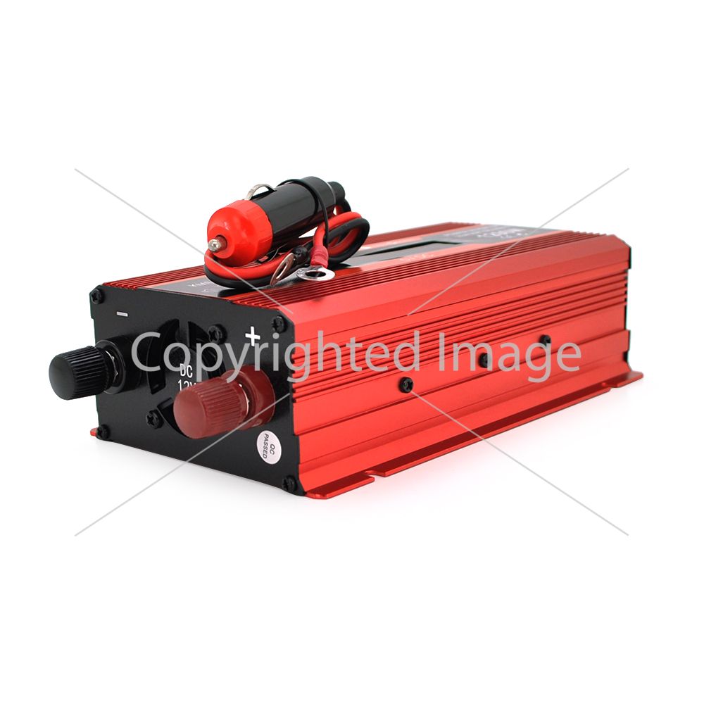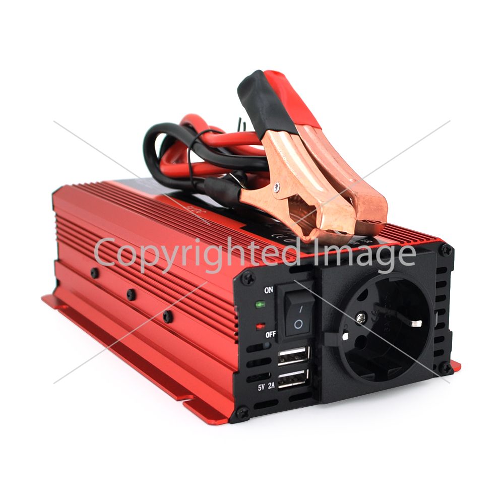 Інвертор напруги KME1200W (DC:600W), 12/220V з апроксимованою синусоїдою, 2 універсальні розетки, 1*USB (DC:5V/2A), крокодили+дроти, Q20