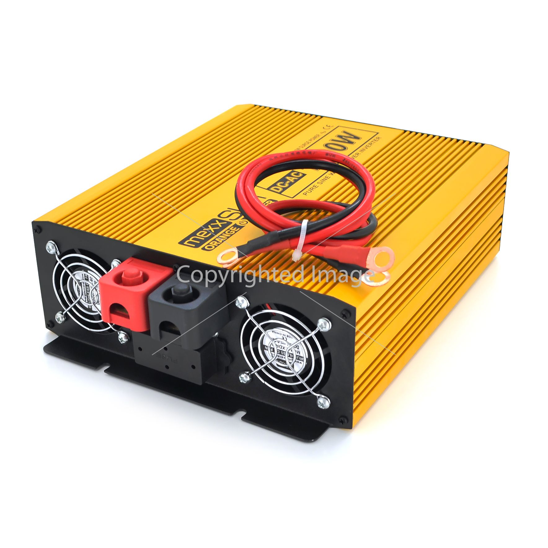 Інвертор напруги MXSPSW-1000-24S - використовується для перетворення електрики 24В на 220В. Дозволяє підключати навантаження до 1000Вт. На лицьовій стороні пристрою розташовані дві розетки, кнопка вкл/викл, світлодіоди. На зворотному боці пристрою клем для підключення проводів акб, вентилятор для активного охолодження пристрою, запобіжники.