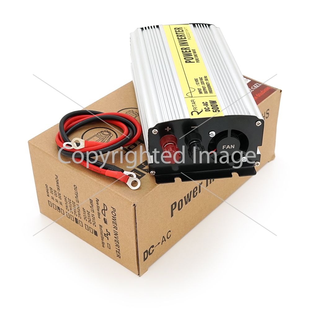 Інвертор напруги RITAR RSC-500, 12V/220V, 500W з правільною синусоїдою, 1xShuko, 1xUSB, клемні дроти, BOX, Q20