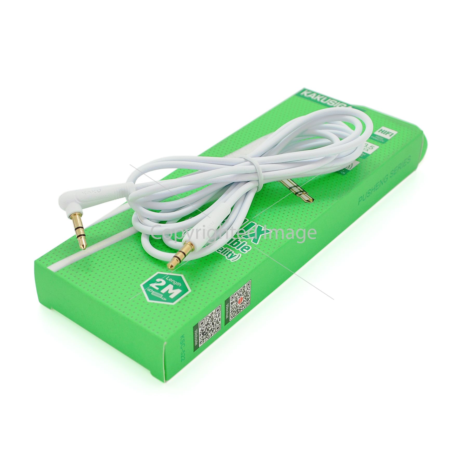 Кабель iKAKU KSC-522 PUSHENG AUX Audio DC3.5 тато-тато 2.0м, GOLD Stereo Jack, (круглий) White cable, Box